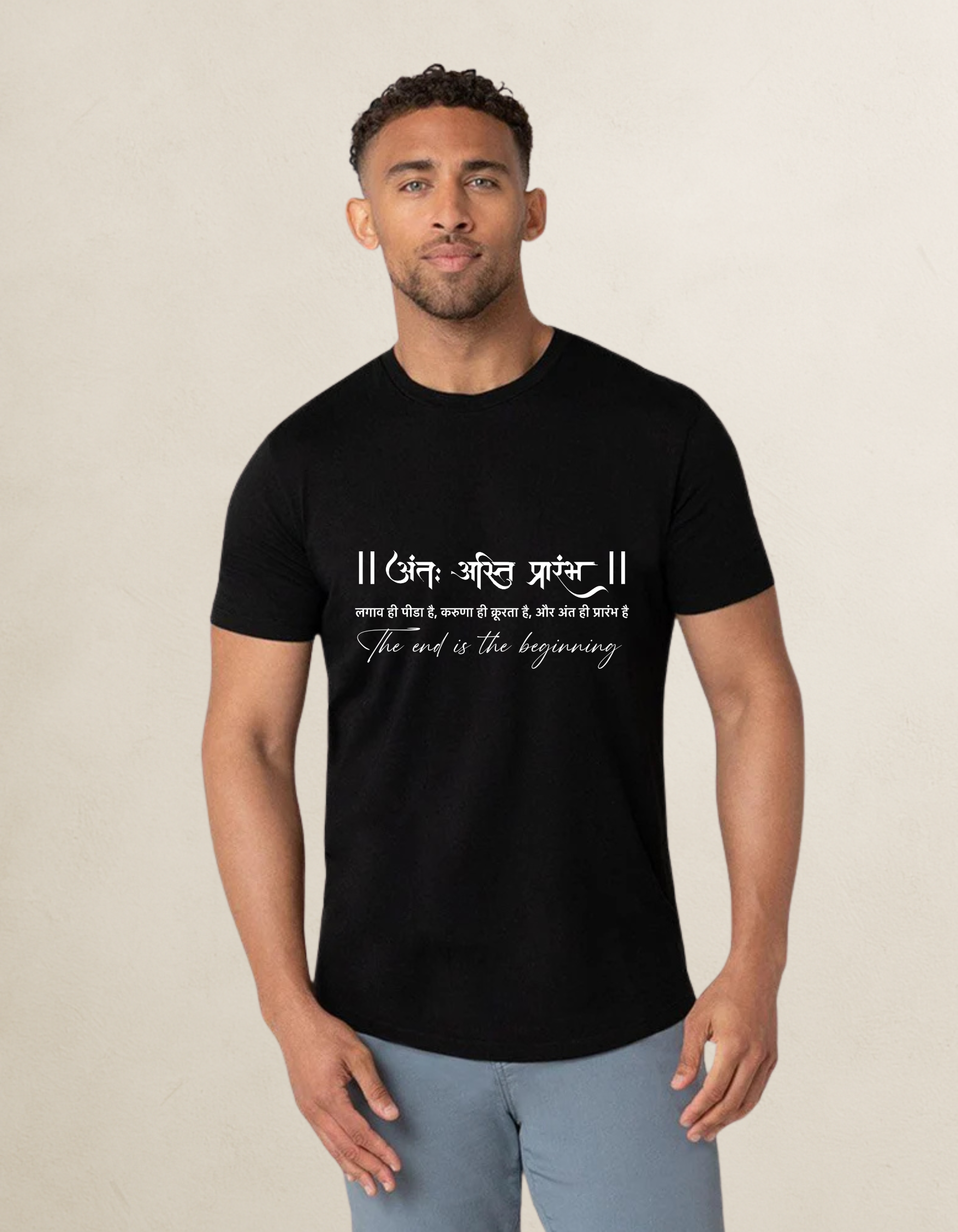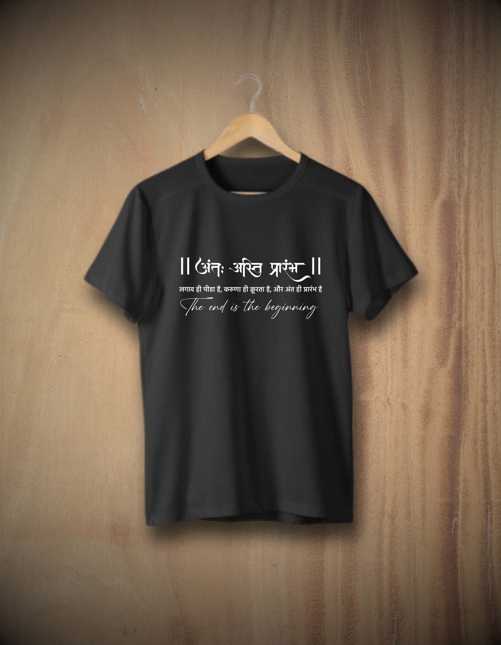 Ant Asti Prārambh – Sanskrit Spiritual Quote Black T-shirt